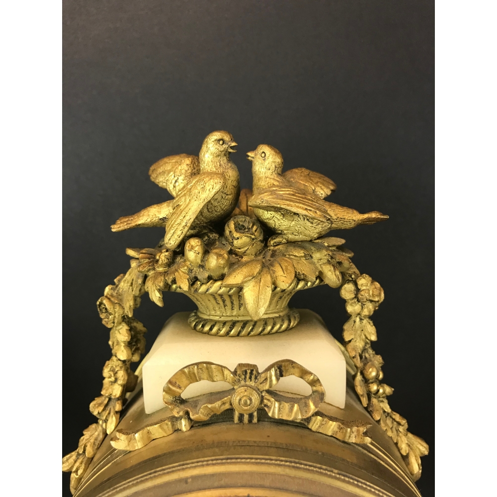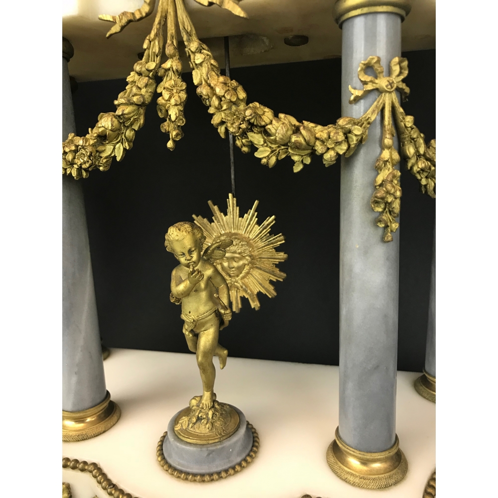 19th C. French Gilt Bronze & and Marble Clock Set By La Roy