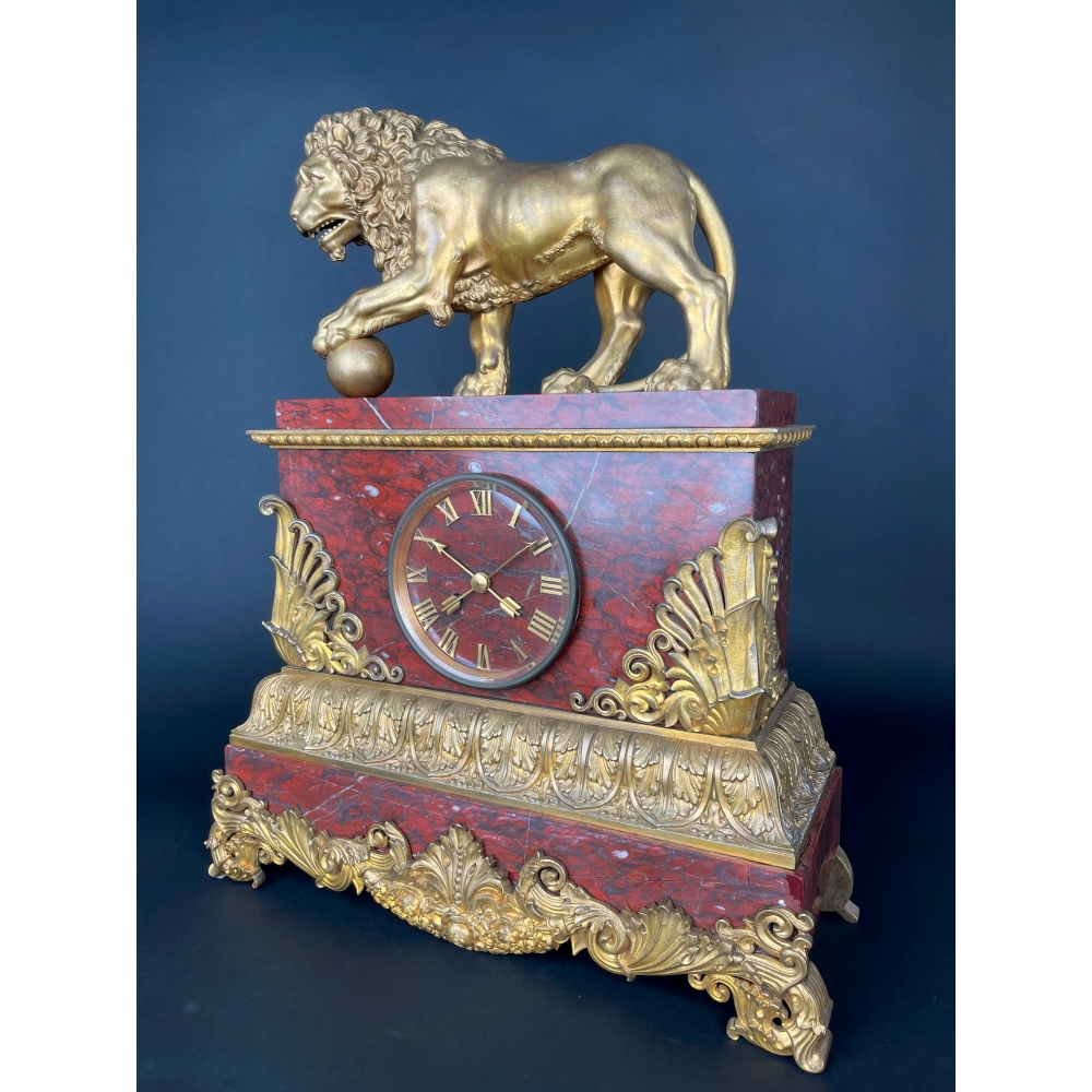 A Large Size Gilt Bronze & Rouge Marble Clock, France, 19th Century
