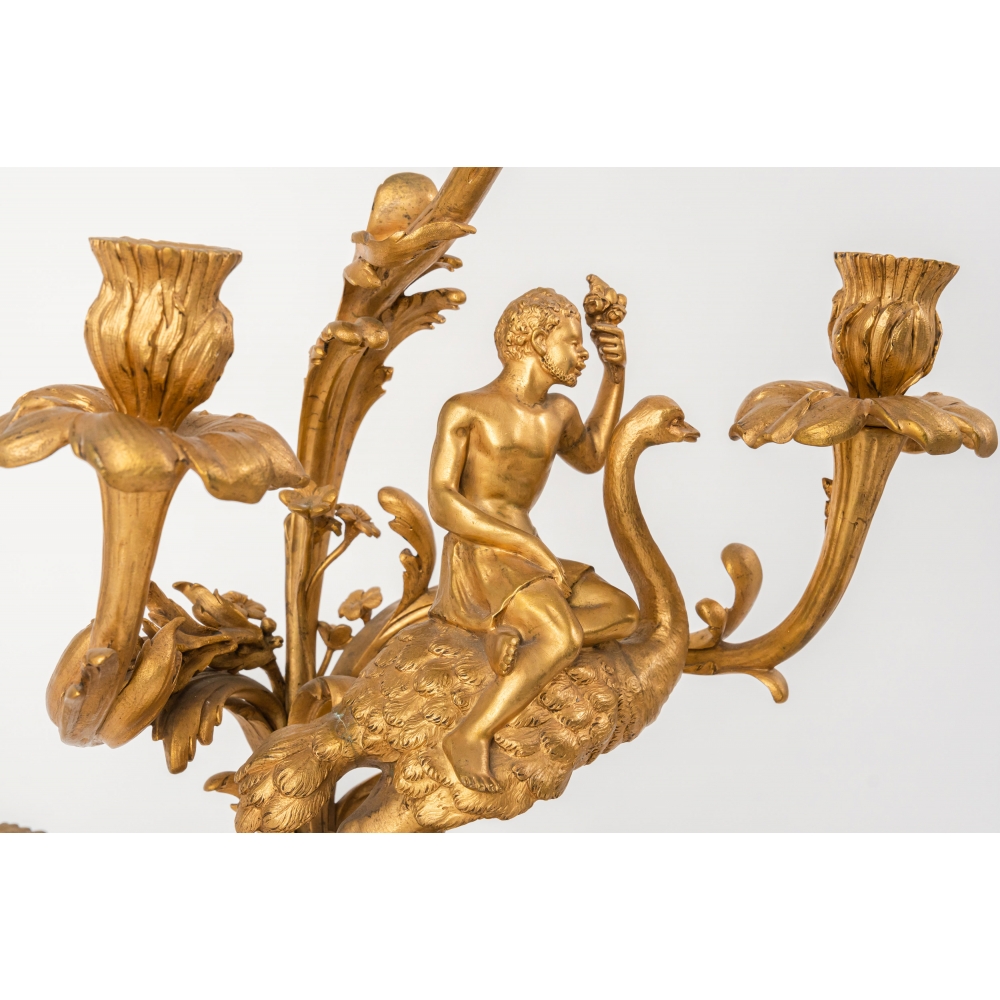 A Pair of Rare Gilt Bronze Candelabras, France, 19th Century.